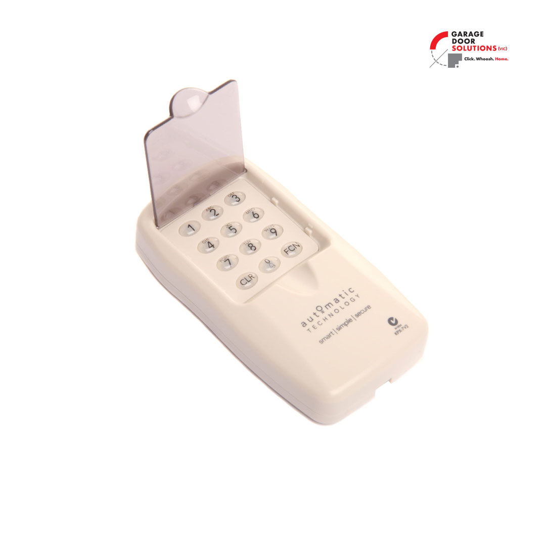 Mounted outside the garage, these use a PIN code instead of a handheld device. Handy if multiple family members need access.